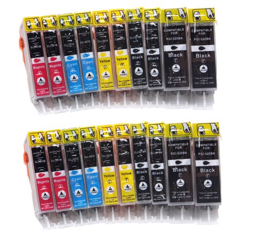 20x Tintenpatronen mit Chip kompatibel zu PGI-520bk / CLI-521bk / CLI-521c / CLI-521m / CLI-521y
